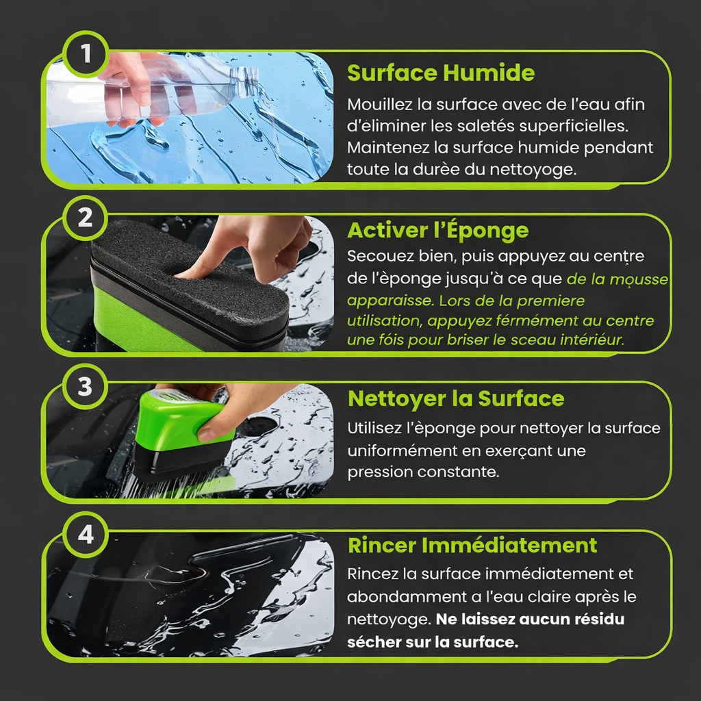 3. Surface propre : Utilisez l'éponge pour nettoyer la surface uniformément en utilisant pression constante.